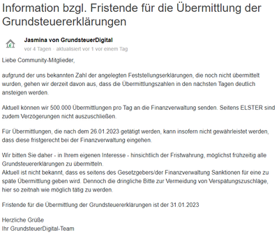 Information bzgl. Fristende für die Übermittlung der Grundsteuererklärungen / GrundsteuerDigital (grundsteuer-digital.de)