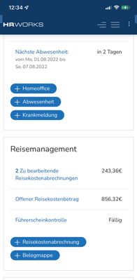 Zum Vergleich, wie HRworks aussieht 😍. Auf gleicher Bildschirmfläche mehr Informationen und Aktionsbuttons (angezeigte Daten sind Demodaten).
