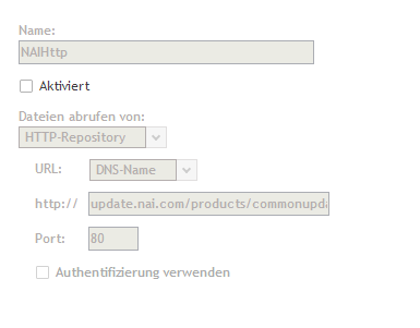 Wir haben dann einen neuen Repositoryeintrag angelegt mit der URL: update.nai.com/products/commonupdater
