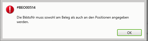 Aufgrund kann die Rechnung in Belege online nicht gespeichert werden.